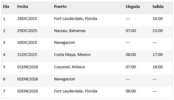 Itinerario del Crucero