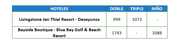 - Debido a los múltiples cambios que ocurren diariamente en turismo, estos precios deben de ser confirmados al momento de solicitar la reserva.