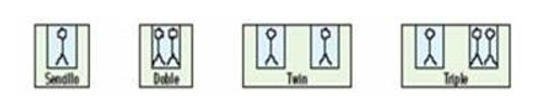 - Las habitaciones triples constan de una cama matrimonial o dos camas twin con una cama plegable o sofá, dependerá de la disponibilidad de los hoteles en el momento de hacer el check in.
