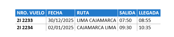 ITINERARIO AÉREO VÍA STAR PERÚ: