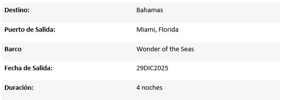 * Royal Caribbean se reserva los derechos de modificar, alterar y cambiar información, sin previo aviso. Itinerarios pueden variar.